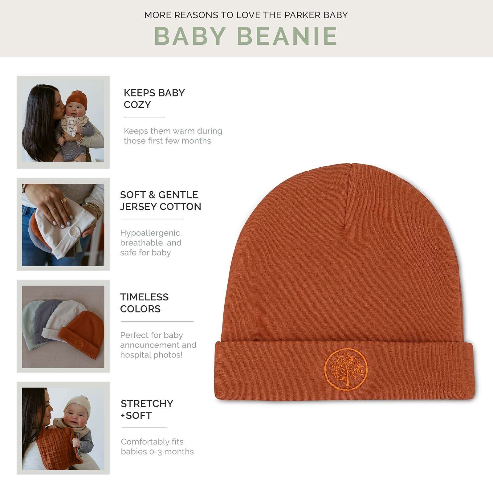 Our Baby Beanies also coordinate beautifully with other Parker Baby Co. nursery favorites like our Muslin Loveys and Muslin Swaddle Sets, making them a thoughtful addition to any baby registry or baby shower gift.